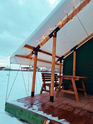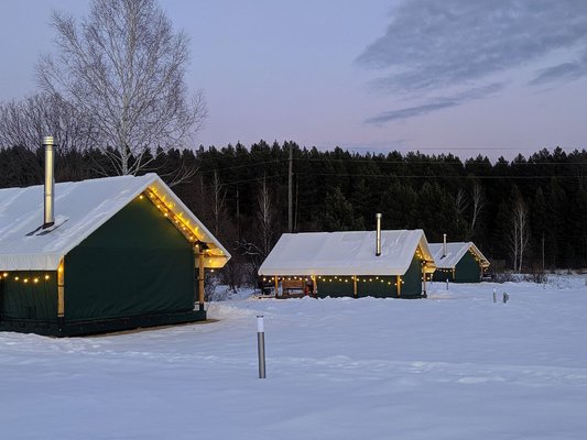 Первый в Красноярском крае глэмпинг-парк «Берег Кана» расположился в живописных местах на берегу реки Кан в городе Зеленогорске.