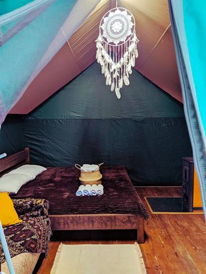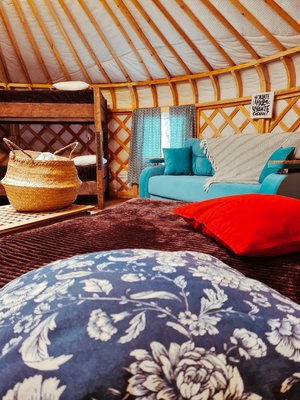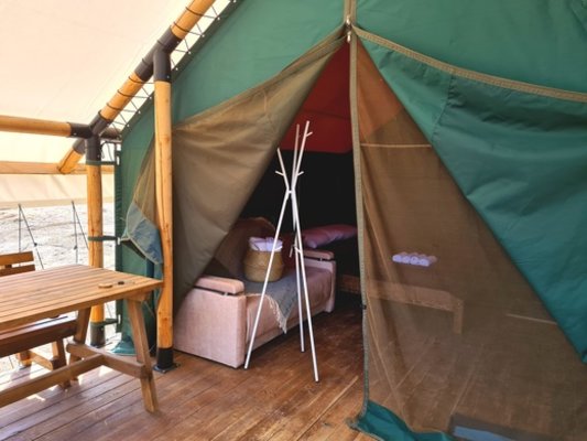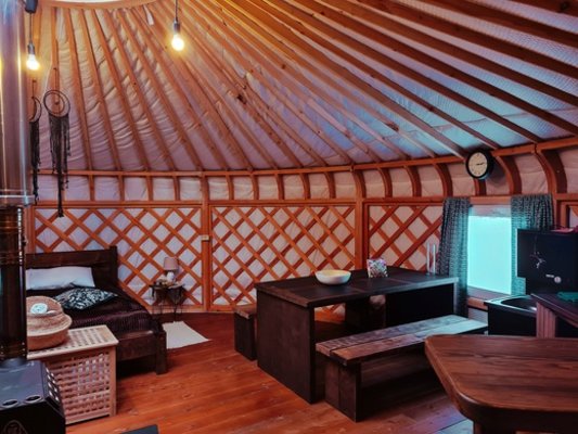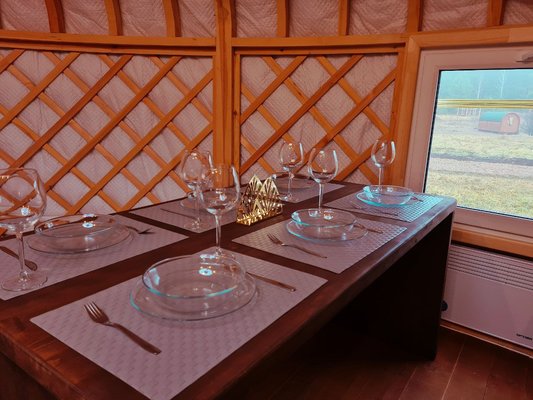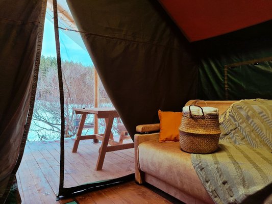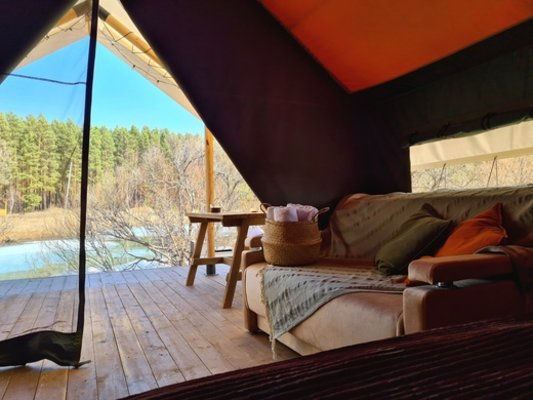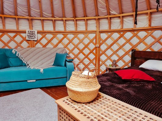 Гости могут разместиться в любой из 5 просторных юрт европейского типа и 5 сафари-тентов с уникальным современным интерьером.