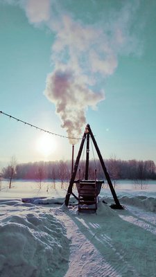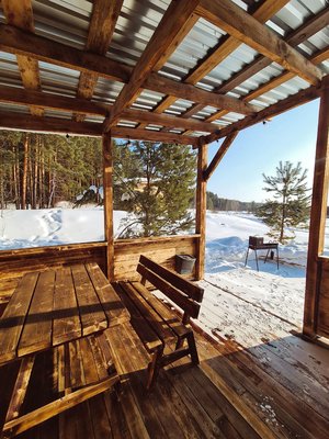Баня в форме буханки хлеба. На 4-5 человек с видом на озеро.