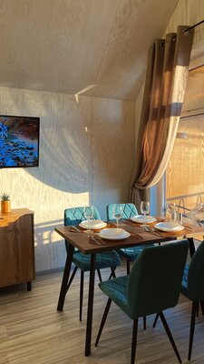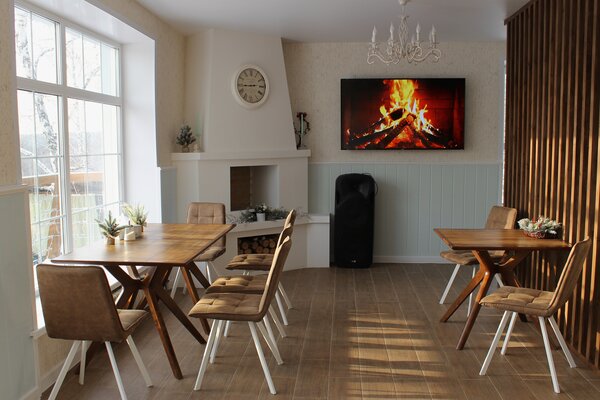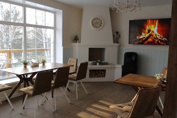 Здесь вы забудете о городской суете и насладитесь свежим воздухом, красивыми пейзажами и теплой атмосферой. К вашим услугам мангальные и костровые площадки, уютная зона с камином, качели — всё для отдыха на любой вкус. Проведите утро за чашечкой кофе, день — за настольными играми или просмотром фильмов, а вечер — у камина с близкими. Для детей оборудована отдельная игровая комната.
