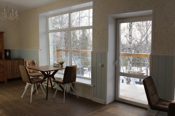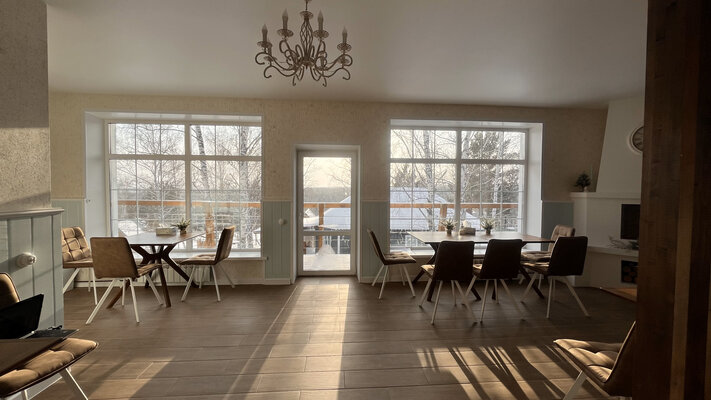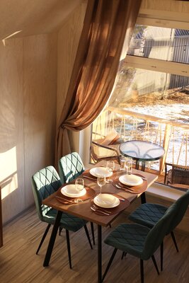 С панорамными окнами, открывающими живописные виды на окружающую природу, гости могут наслаждаться атмосферой расслабления. В течение дня гости собираются здесь, чтобы испытать азарт настольных игр или погрузиться в просмотр любимых фильмов. В этой дружеской обстановке каждая встреча становится незабываемым событием, полным смеха и ярких воспоминаний.