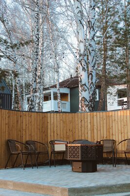 Активный отдых тоже обеспечен: прогулки по лесным тропинкам, зимняя горка и баня с чаном помогут расслабиться и зарядиться энергией.