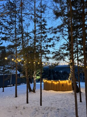 На территории клуба расположен банный чан, доступный для бронирования с 16:00 до 24:00. Рекомендуется делать заказ заранее, так как подготовка занимает 6-7 часов. За дополнительную плату посетители могут наполнить чан набором из веточек пихты и цитрусовых.