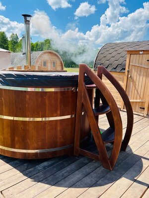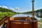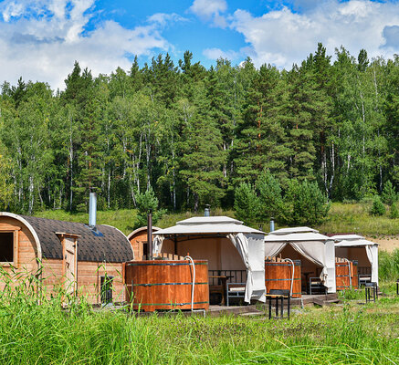 Кедровая на берегу. Компактные кедровые бани на берегу озера. Рядом с баней расположен шатер, оборудованный столами, стульями и мангалом. Вместимость: до 4 человек. Дополнительно доступна к бронированию кедровая купель. Аренда от двух часов.
