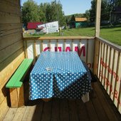 Инфраструктура: большая летняя веранда со всем необходимым электрооборудованием, магазин, детский бассейн, площадка для игры в волейбол, автостоянка, русская баня, специально оборудованные места для кострищ, палаточный городок.