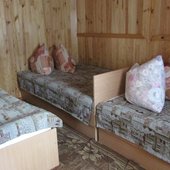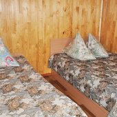 Для размещения предлагаются уютные восьмиместные домики и двухэтажная гостиница с номерами. Питание гостей предусмотрено в кафе, по системе заказного меню. Комплекс подойдет для проведения банкетов и корпоративов, а так же отдыха дружеской компанией, семейного отдыха и любителям активного времяпрепровождения!