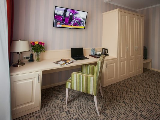 Номерной фонд включает двухместные и одноместные номера, апартаменты, люксы и студио.