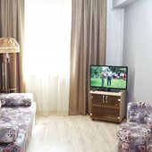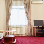 При гостинице есть банкетный зал на 60 персон. Так же для деловых переговоров и встреч разного уровня есть просторный конференц-зал, который расчитан на 70 человек.