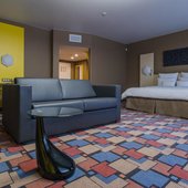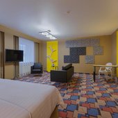 В номерах гостиницы имеется все необходимое для проживания: кровать, холодильник, телевизор, телефон, сейф, Wi-Fi.