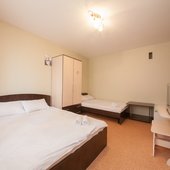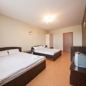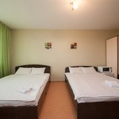 Номера оснащены всей необходимой бытовой техникой, ванной комнатой и средствами личной гигиены. На всей территории гостиницы работает Интернет Wi-Fi.