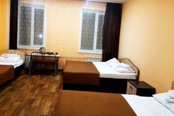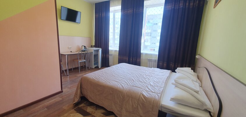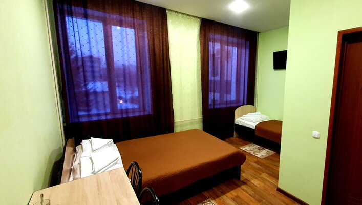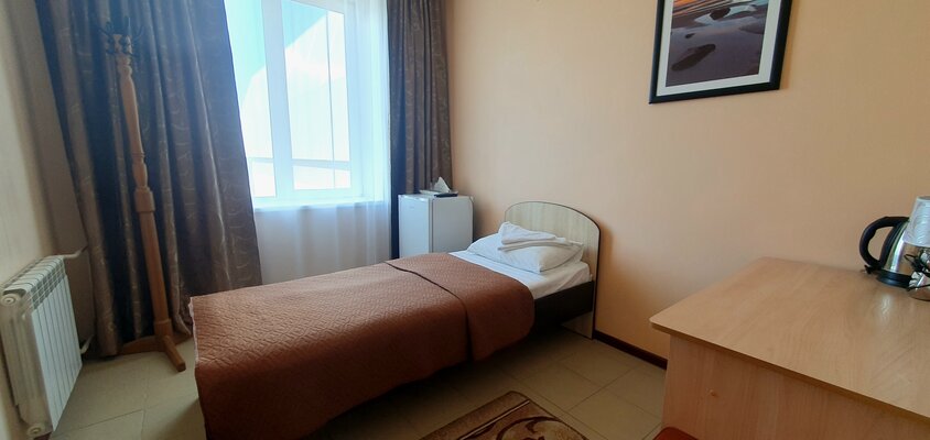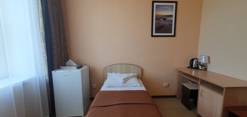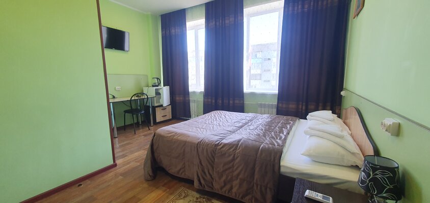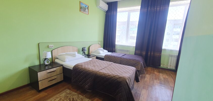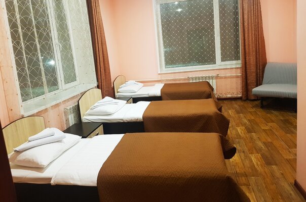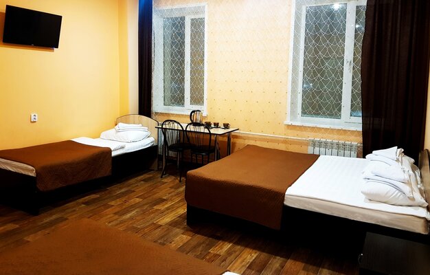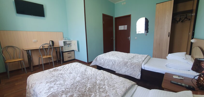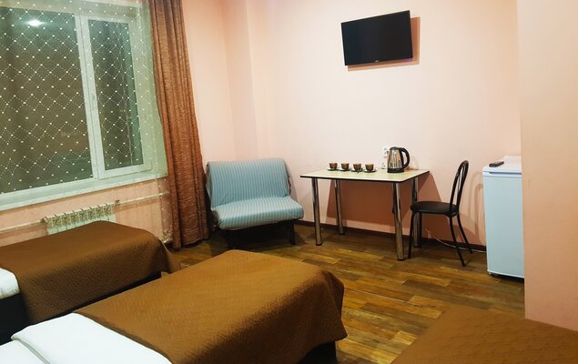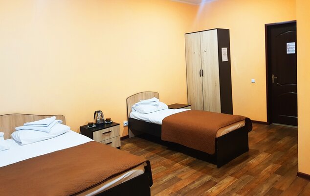 Трехэтажный корпус отеля находится на ухоженной закрытой территории. К услугам гостей 10 номеров различных категорий: от стандартных с собственной ванной комнатой до бюджетных вариантов с общим санузлом на этаже. В каждом номере предусмотрены ЖК-телевизор, холодильник и электрочайник.