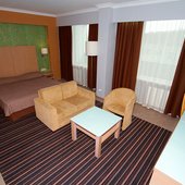 Допускается дополнительное размещение 1 ребенка старше 5-ти лет с предоставлением дополнительного места (в люксах, студиях - диван, в прочих номерах - раскладная кровать) 50% от стоимости основного места.