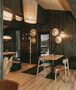 Сердцем проекта является именно это пространство, где происходит первая встреча гостя, регистрация перед заселением. Здесь можно заказать завтрак, который принесут в номер или накроют в кафе, выпить кофе, посмотреть любимый фильм на большом экране.