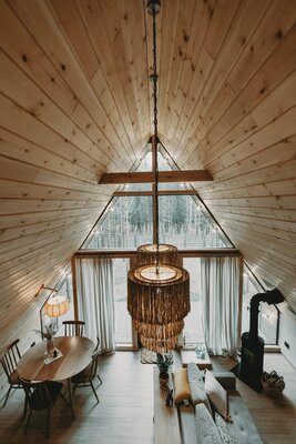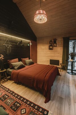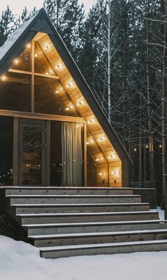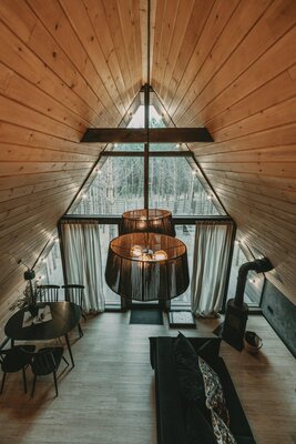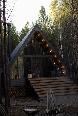 В лодж A-frame 1,2 можно пригласить до 4-х гостей, покинуть территорию необходимо до 23.00.