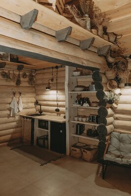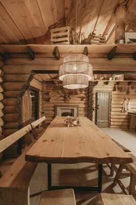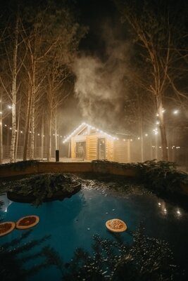 Русская рубленая баня с панорамным видом и горячей купелью — это шикарный банный комплекс, наполненный эстетикой и традициями с горячей купелью, зоной барбекю, где есть уголь, решетки, средства для розжига. Баня вмещает в себя до 10 гостей.