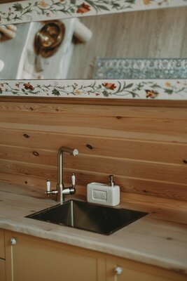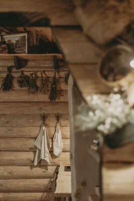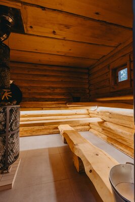 В банном доме есть: большая парная с разным уровнем полок и окном для проветривания, помывочная с ушатом, санузел, большая комната отдыха с кухней, где есть все необходимое: посуда столовая и для сервировки, бокалы для пива, вина, чая и воды, столовые приборы, холодильник, микроволновка, чайник. Комплиментарно: ассортимент чаев и масел для парения.