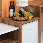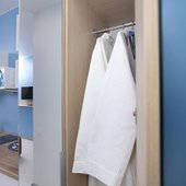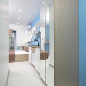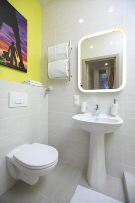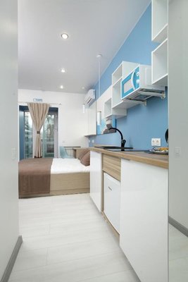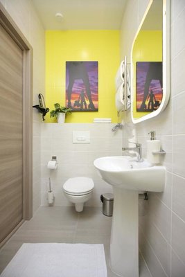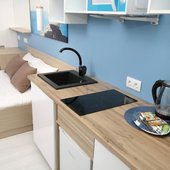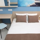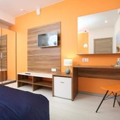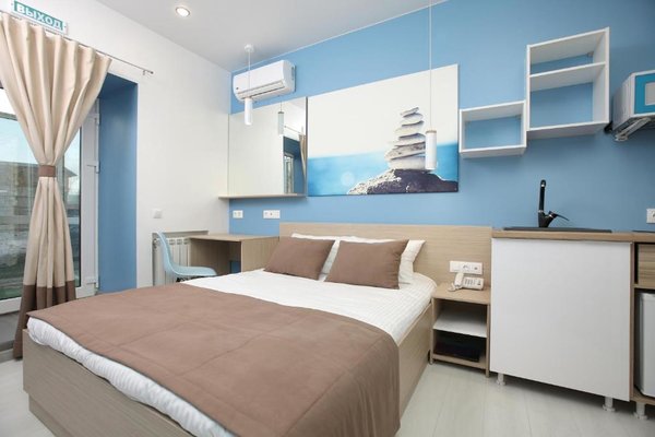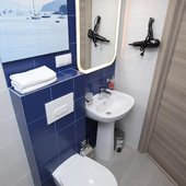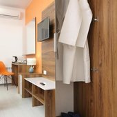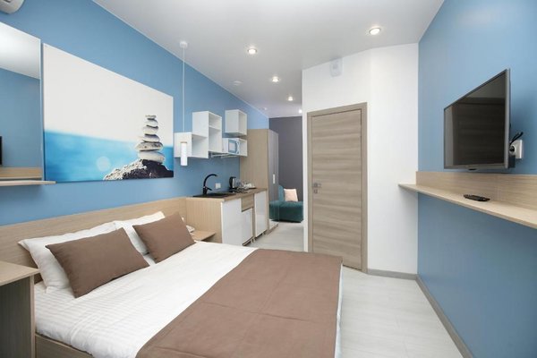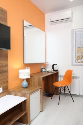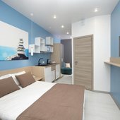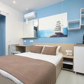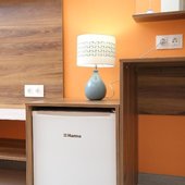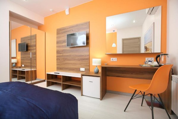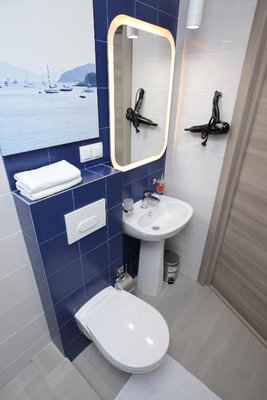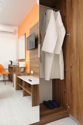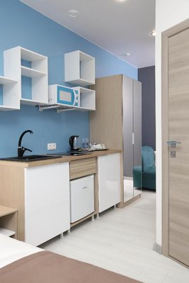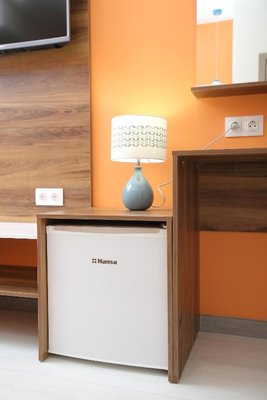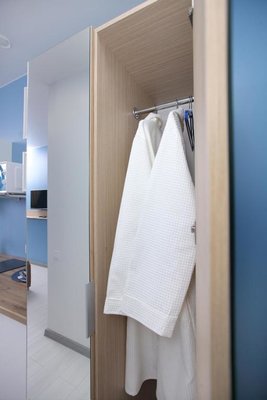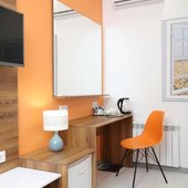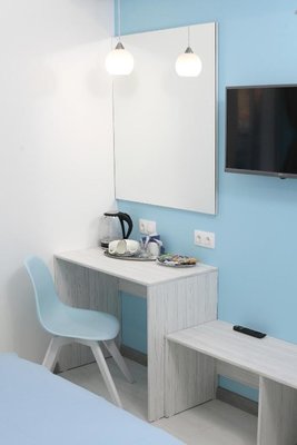 Здесь есть вся необходимая мебель и техника для комфортного отдыха, предусмотрена рабочая зона, есть сейф. В персональной ванной комнате есть гигиенические принадлежности и фен.