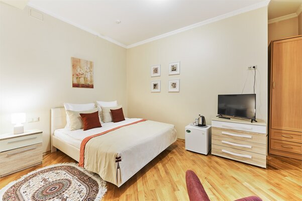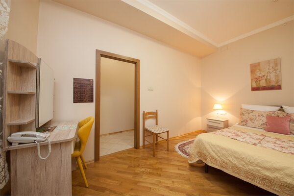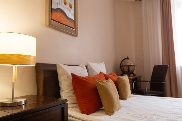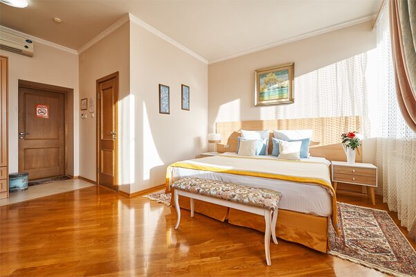 К услугам гостей 14 светлых и комфортабельных номеров, оснащенных всем необходимым для приятного отдыха: удобной мебелью, кондиционером и телевизором. Особое внимание уделено деталям в ванной комнате, где вы найдете халаты, полотенца, тапочки, фен, а также расширенный набор косметических принадлежностей, включая лак для волос, антистатик и дезодорант. Для вашего комфорта доступны бесплатный Wi-Fi, прямая связь с ресепшеном и электронные ключ-карты.