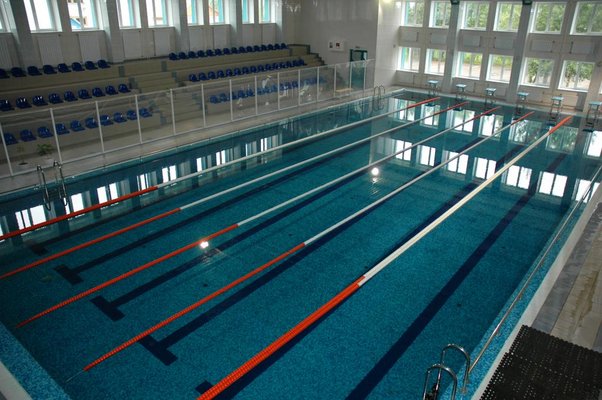 Плавательный комплекс с двумя бассейнами – детским (6 м х 12 м) и взрослым (12 м х 25м), лечебными ваннами.
