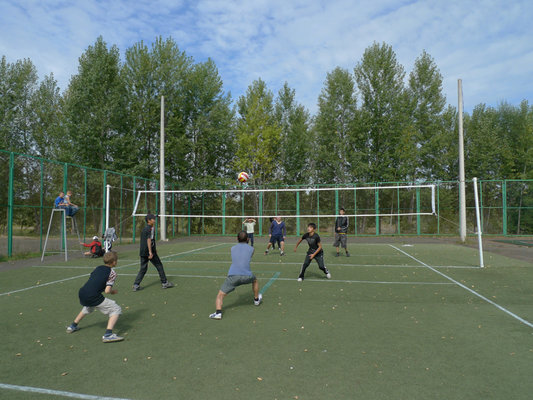 - открытые спортивные площадки: футбольное поле, волейбольная, баскетбольная площадки (укомплектованы спортинвентарем).