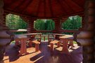 Для гостей обустроены комфортные беседки с видом на лес. Около них оборудованы мангальные площадки. Беседки имеют ночное освещение. Также возможно подключение звуковой аппаратуры.