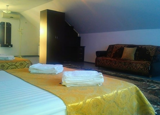 Здания пансионата расположены на закрытой охраняемой территории. Гости размещаются в главном корпусе, а также в четырех небольших трехэтажных коттеджах, которые находятся на отдельной территории не далеко от корпуса. Номера пансионата укомплектованы необходимой мебелью и техникой, предусмотрена возможность предоставления дополнительных спальных мест.