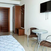 На территории есть хорошее кафе, продуктовый магазин с большим ассортиментом товаров, медпункт, совсем рядом песочно-галечный пляж. Дружелюбный и гостеприимный коллектив гостиницы 35 меридиан в Приветном, создаст максимум условий для вашего комфортного отдыха в Крыму.