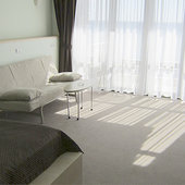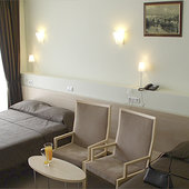 Оборудованный городской пляж с мелкой галькой находится в 50 метрах от отеля.