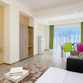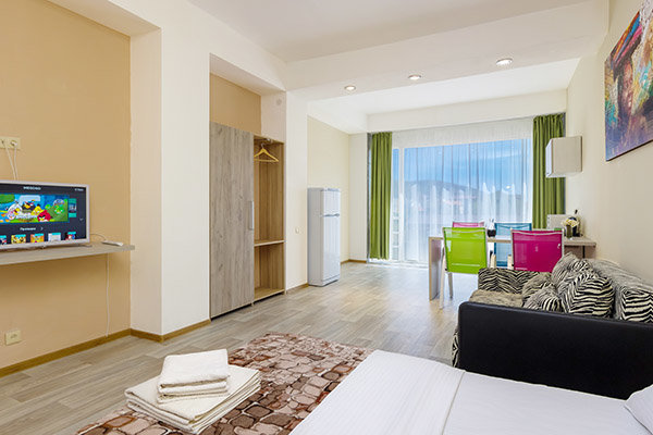 Отель «Акватель» – это комфортный отдых у моря на высоком уровне. Удобное месторасположение берегом моря, аквапарком, дельфинарием и центром города. Уютные просторные номера с панорамными окнами создают домашнюю атмосферу и радуют глаз современным дизайном