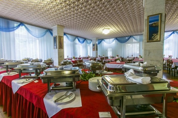 В соответствии с профилем лечения в столовой санатория организовано диетическое трехразовое лечебное питание по системе «Шведский стол» по диетам в зависимости от заболевания.