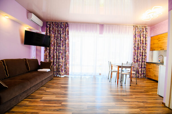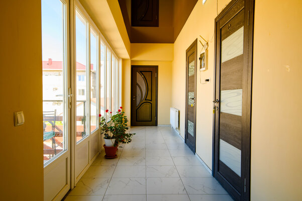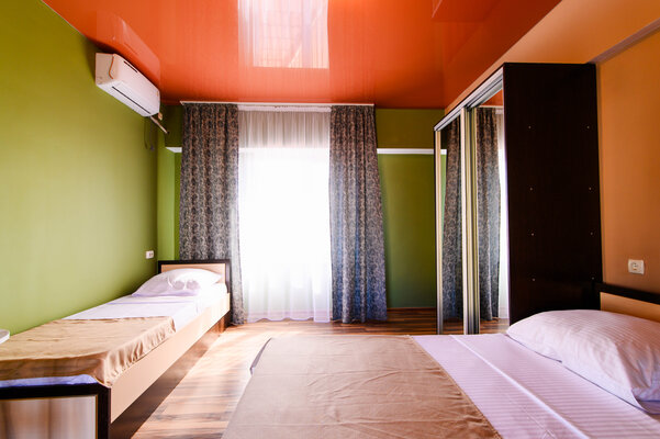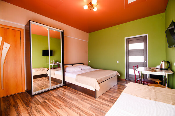 Мы предлагаем комфортабельные номера стандартного класса, оснащенные всем необходимым для приятного пребывания. Для тех, кто ценит простор, доступны светлые апартаменты площадью 46 м², идеально подходящие для семьи или дружной компании. А четырехместный номер с балконом станет прекрасным выбором для утреннего кофе с видом или романтических закатов.