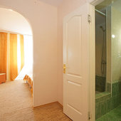 Новая мощная электрическая печь с электронным пультом управления обеспечивает быстрый нагрев парилки и устойчивую комфортную температуру (до 130 градусов).