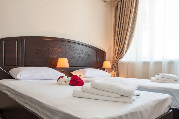 Интерьер отеля выдержан в национальном восточном стиле, элегантно обставленные номера имеют все удобства для комфортного отдыха.