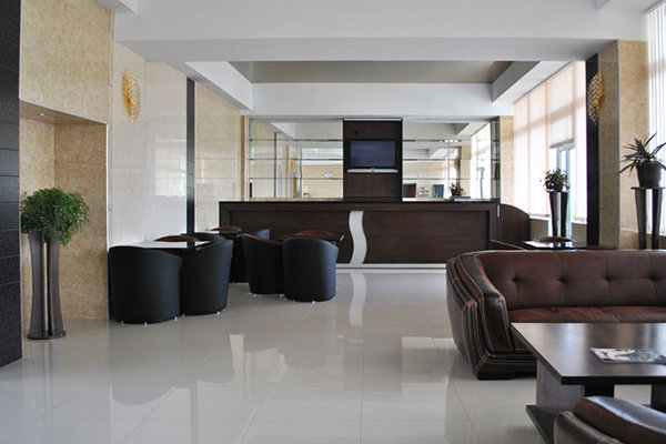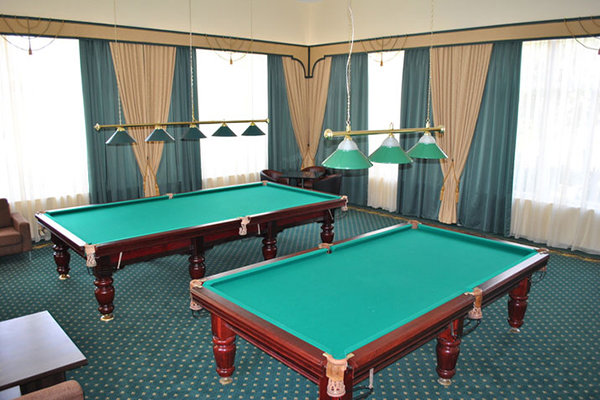 Большой холл,в холле расположены: ресепшн, бильярдная, лоби-бар, библиотека, бильярдная. На первом этаже корпуса: сауна,тренажерный зал.