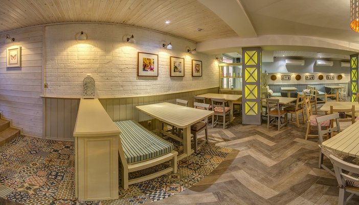 Летнее кафе — 50 м от отеля: европейская, итальянская кухни, работает до 23:00