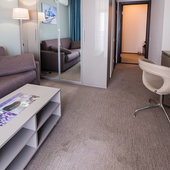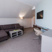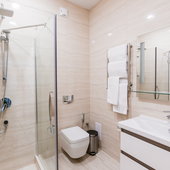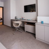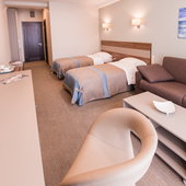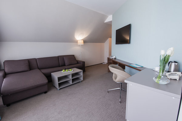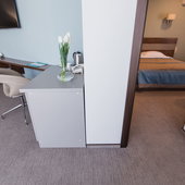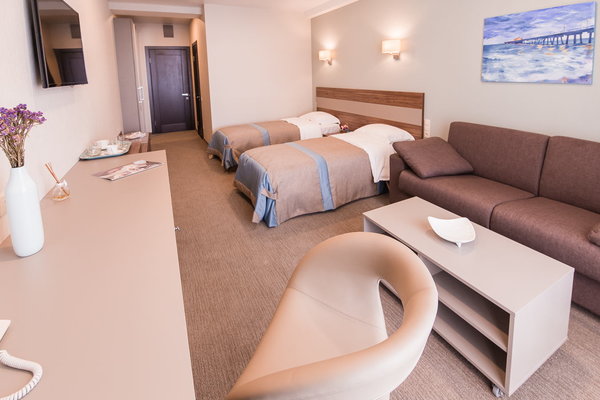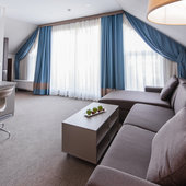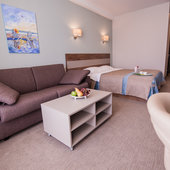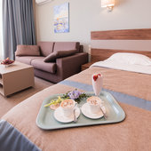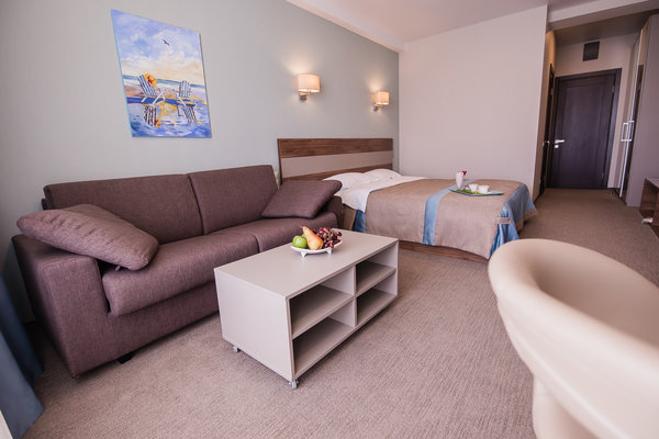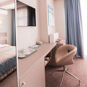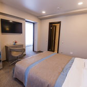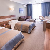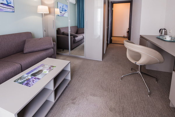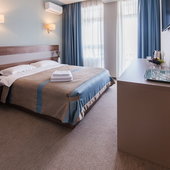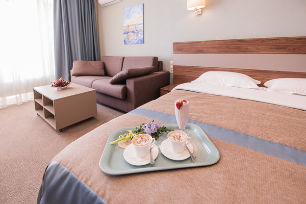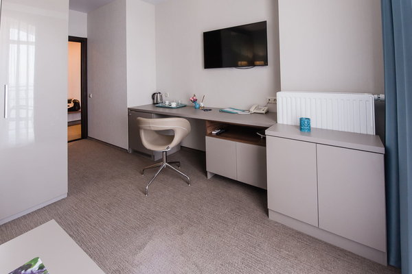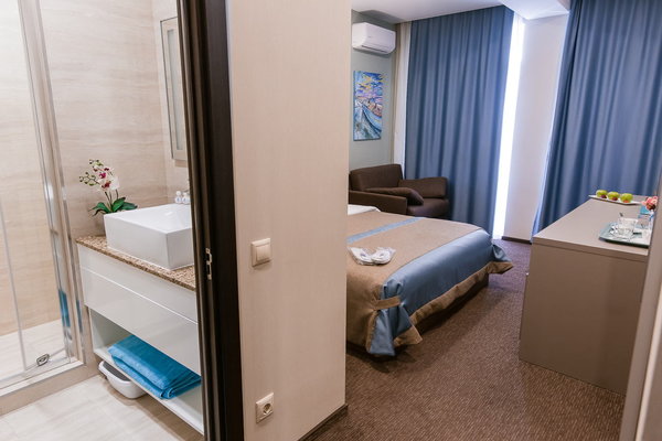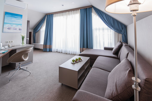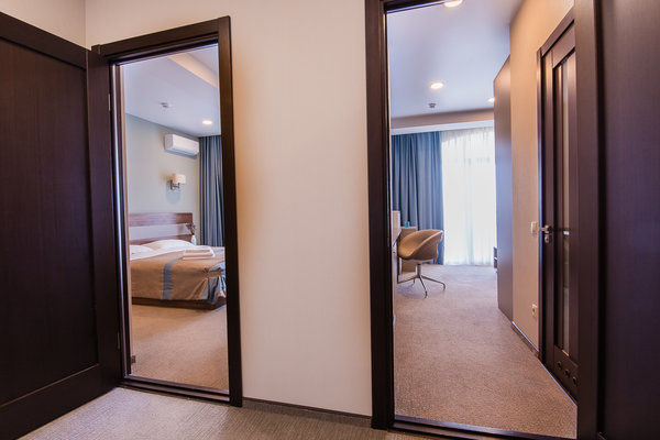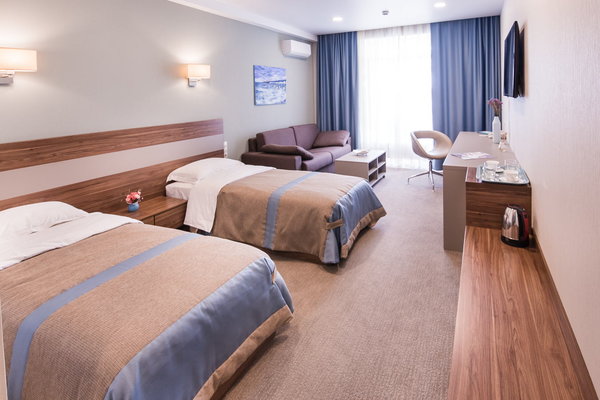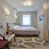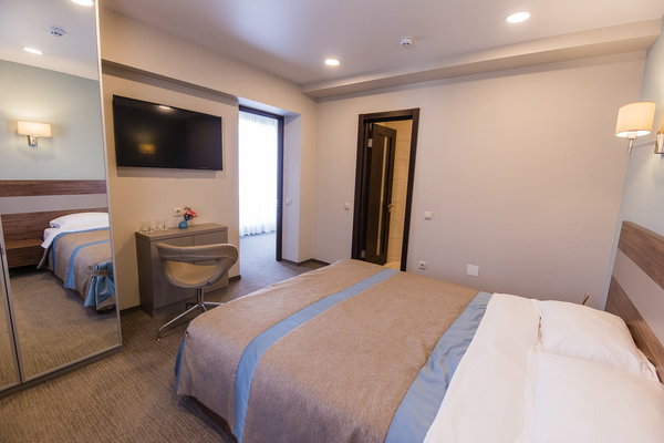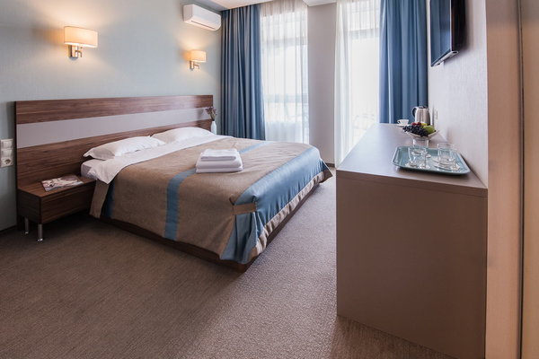 Уютные номера оснащены современной мебелью, холодильником, сейфом, кондиционером, плазменной