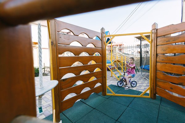 В десяти минутах ходьбы от отеля расположен хорошо оснащенный поселковый песчаный пляж, на территории которого оборудованы душевые, навесы, лежаки, шезлонги, есть бары, кафе, площадка для пляжного волейбола, детские аттракционы.