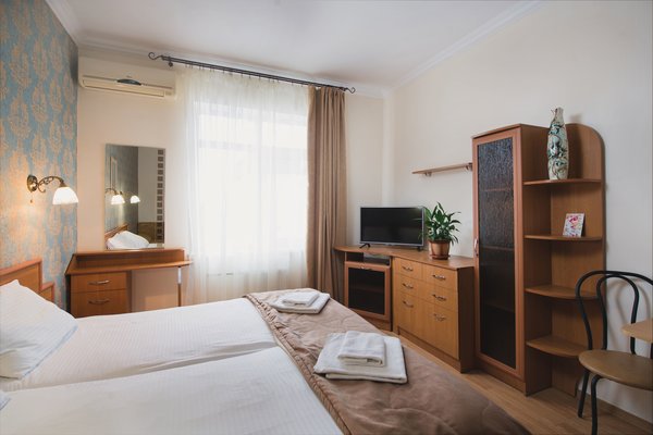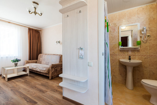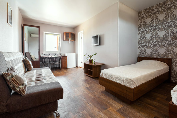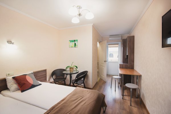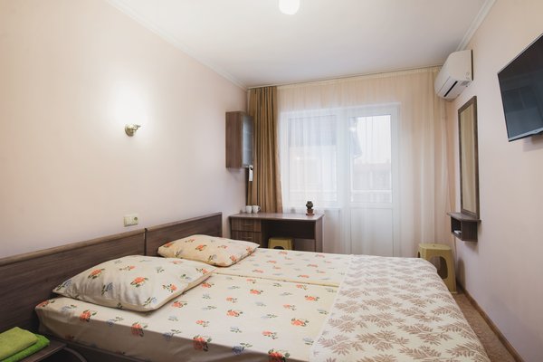 Отельный комплекс состоит из трех жилых корпусов, размещенных на охраняемой благоустроенной территории. Номерной фонд, позволяющий одновременно разместить до сто двадцати отдыхающих, предлагает гостям удобные номера разного уровня комфорта — от категории «Эконом» до «Люкс». Номера оснащены необходимой мебелью, есть телевизоры, холодильники. В бюджетных номерах санузел общий на два блока, и отсутствуют кондиционеры.