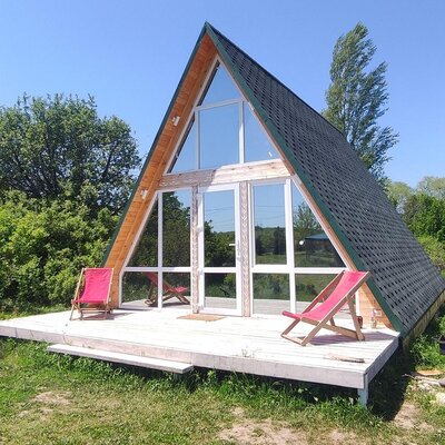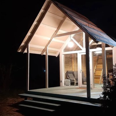 - Теплая беседка. Бревенчатый домик вместимостью до 12 человек, рядом с прогулочной зоной, мангалом на берегу озера и открытой площадкой для игр. Стоимость аренды ― от 2000 ₽/день (пн–чт), от 3000 ₽/день (пт–вс и праздничные дни).