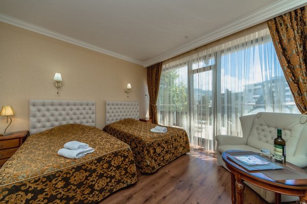 Расстояние до аэропорта — 97 км, до железнодорожного вокзала — 83 км. Вблизи с отелем — пляж, Чёрное море, кинотеатр Сатурн IMAX, Армянская церковь, музей восковых фигур, собор Александра Невского, музей К.А. Тренёва и