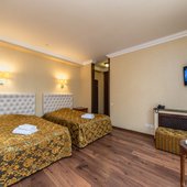 На территории отеля находятся кафе и бар. Но дополнительно гостям предложена доставка широкого ассортимента блюд и напитков прямо в номер.