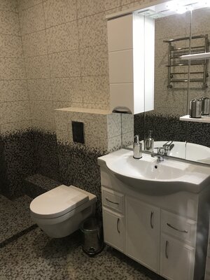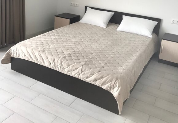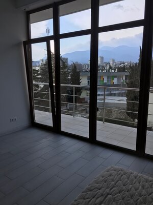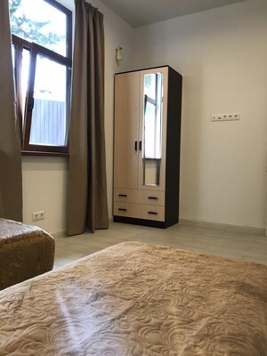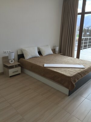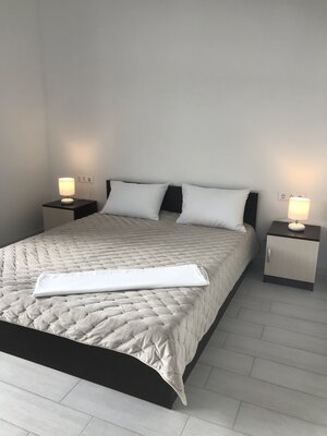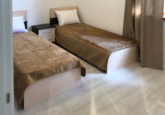 Гостевой дом состоит из трех номеров на одном этаже с отдельным входом и дизайнерским ремонтом. В каждом номере установлены панорамные окна до пола.