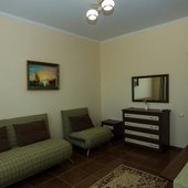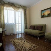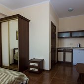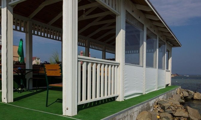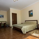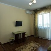 Тихая спокойная обстановка. Безопасность всей семьи, особенно детей из-за мелководья залива, теплой воды и песчаного дна. Комфортабельные условия проживания, имеется кухня. На территории гостевого дома можно приобрести прохладительные напитки, мороженное.