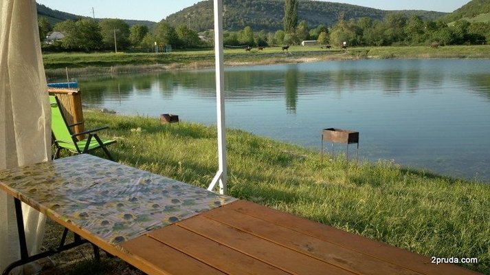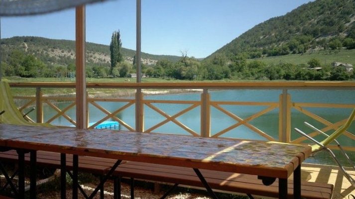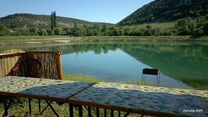 Аренда беседки в живописном месте у озера в предгорье Крыма. Предоставляется навес, мангал, столы и скамейки.