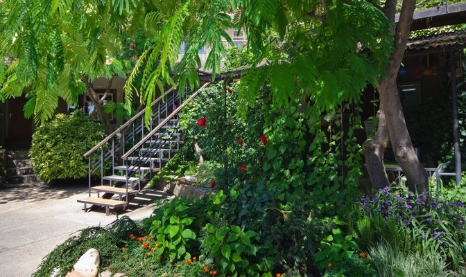 Находится дом в тихом районе города, и постояльцы уважают покой других гостей, поэтому, если цель вашей поездки в Крым – спокойный отдых, то в пансионате «Эдем» вам будет комфортно. Если же вы предпочитаете активный отдых, персонал будет рад помочь вам и в этом.
