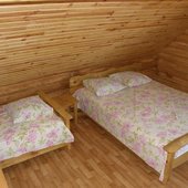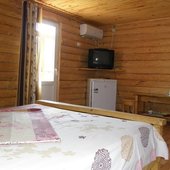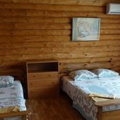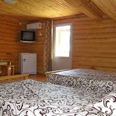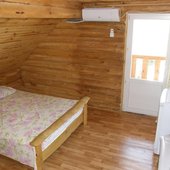 «ЭкоХауз» – это деревянный 3-этажный сруб. Номера «стандарт» – санузел с душевой кабиной и новой сантехникой, кондиционер, ТВ, холодильник, балкон. Номера «эконом» – все то же самое, но 1 санузел на 2 номера. В пансионате имеется кухня, парковка, детская площадка.
