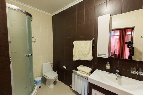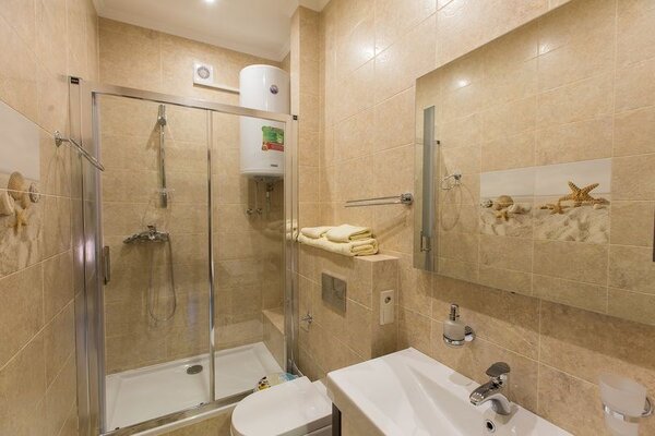 Поездом до ж/д вокзала г. Евпатория, далее на автобусе №6 до остановки «Санаторий Гелиос», далее пешком 450 м до апартаментов.