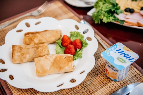 Гостей в ресторане ждет кулинарное изобилие европейских и интернациональных блюд. Широкий выбор напитков и коктейлей придется по вкусу каждому посетителю. Возможно питание в сторонних ресторанах и кафе города. Завтрак подается в номер.