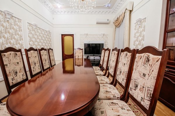 Конференц-зал рассчитан на прием делегаций до 15 человек. К услугам клиентов компьютерная и копировальная техника, бесплатный доступ к сети интернет, техническое оборудование для видеопрезентаций.