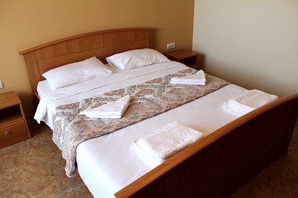 Междугородним автобусом до автовокзала г. Евпатория, далее – на городском маршрутном такси №8, остановка «Сауна», от остановки до гостевого дома -150 м